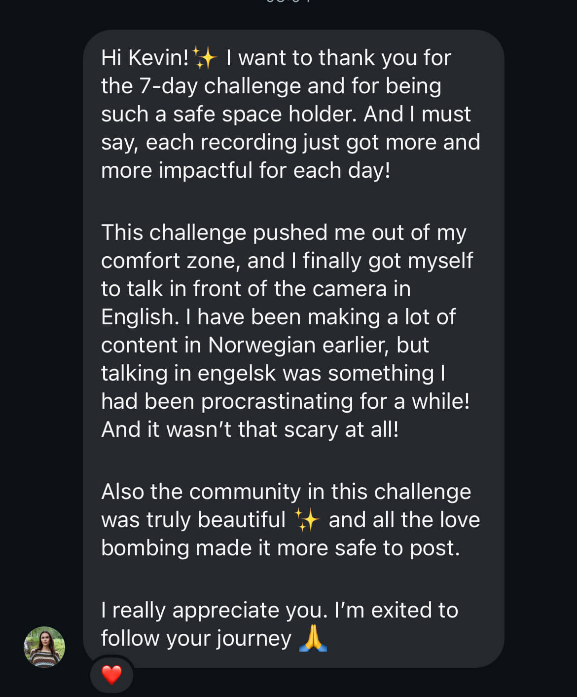 You'll finally be surrounded by people who actually get you. No more leaning on friends and family who's never walked a mile in your shoes. Here, you'll be supported not only by Kev, but a family of heart-led creators.