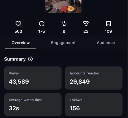 - Chaz got 43k views and 156 follows from a post where he shared his heart